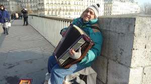 over the river Seine. We started to hear someone playing the accordion, and it was such a lovely French familiar song. I decided to try the video settings on my camera. If you would like to hear him, click here: Paris Accordionist