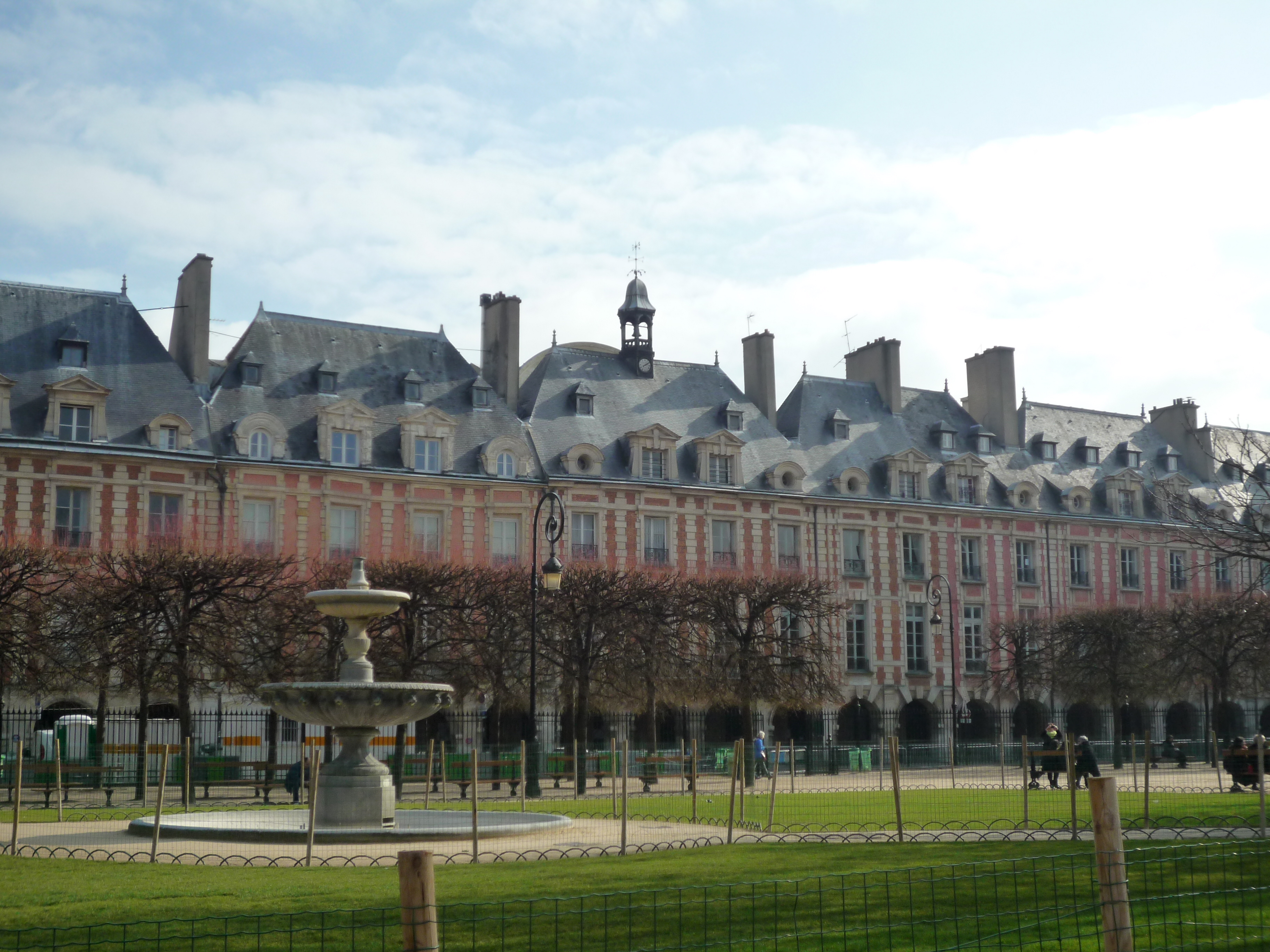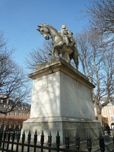 The photo below is of the equestrian bronze of Louis XIII which was erected in the center of the square.