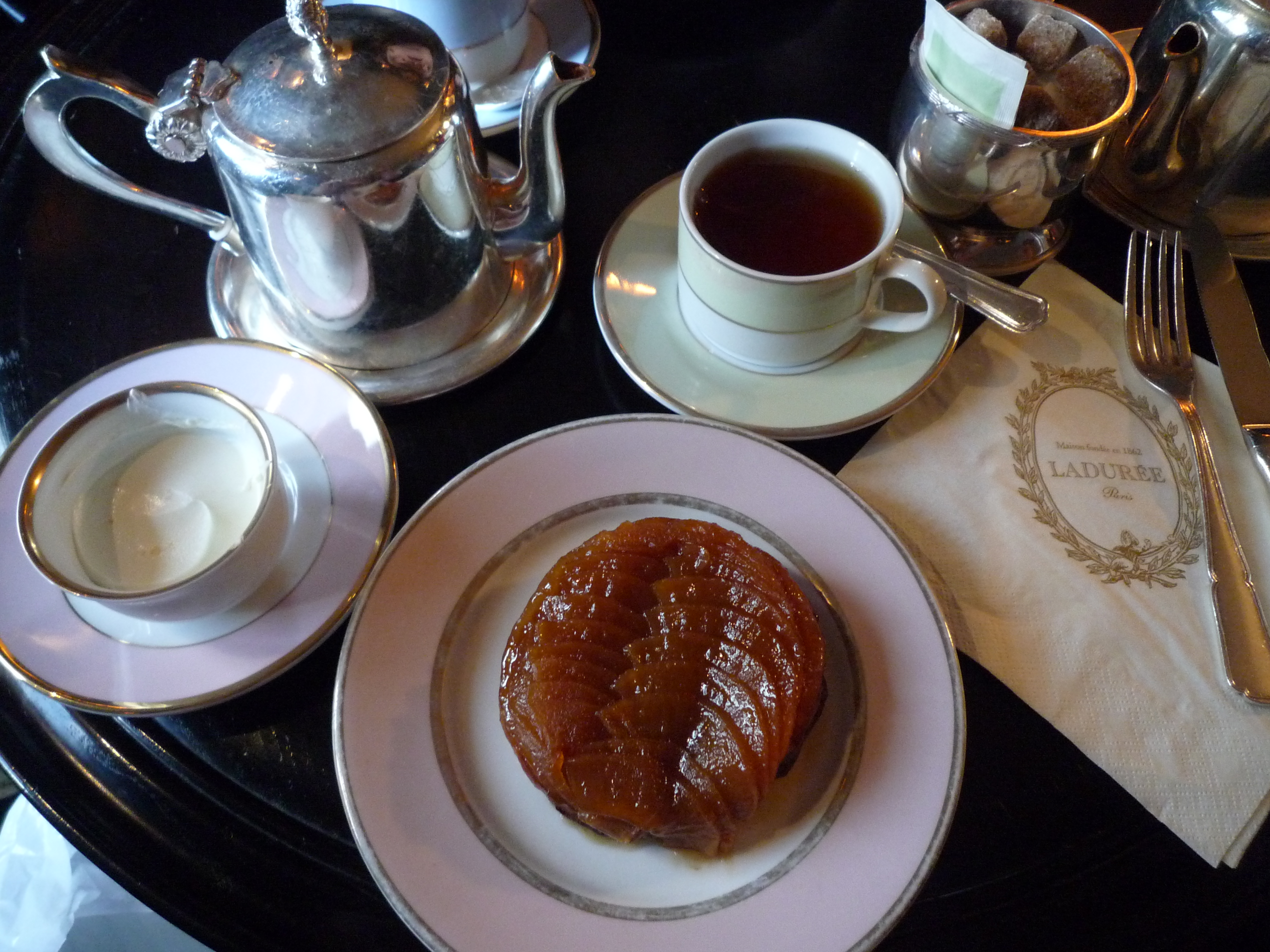 The top photo is of one of my favorites here in Paris.  There can be no favorite as they all are too amazing, so it just depends what you might be in the mood for really.  Above is the Tarte Tatin at Ladurée served with fresh cream for dolloping all over the top.  I wonder to myself if it would smooth the skin or what other wonders it might do for the face if it were applied and smoothed all over it.