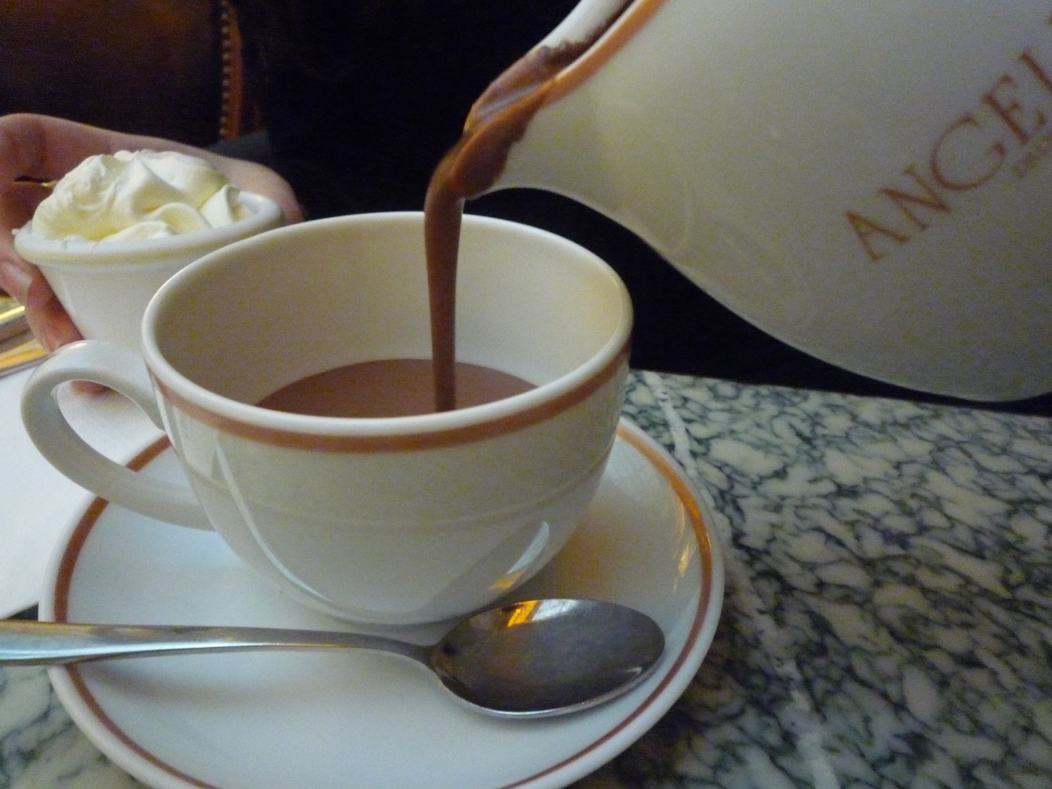 Now we get to the amazing Angelina.  It is near the Louvre on rue de Rivoli and you can take the metro to the Tuileries stop.  Don’t miss it if you get the chance.  Order the chocolate chaud, the hot chocolate.  They even offer chocolat blanc chaud , the white hot chocolate. Just imagine, hot and thick melted african chocolate being poured into your cup.  Naturally, they provide a sumptuous side of heavenly whipped cream.