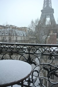 Sunday morning we got up to see it was snowing in Paris. How delightful, I just love the snow so much. I saw on the news it snowed in many places in Europe including Rome and London and hundreds of flights were cancelled due to the weather. Here in Paris we only got about less than an inch and it disappeared soon after.